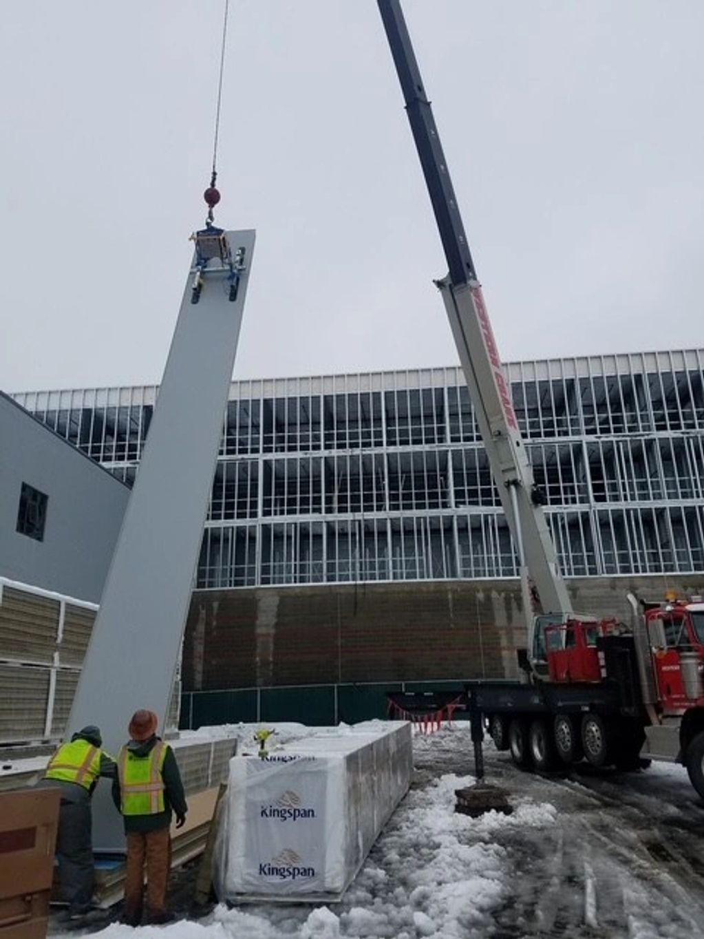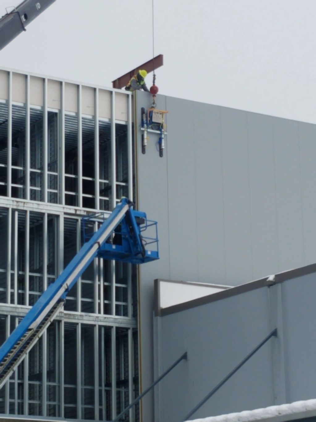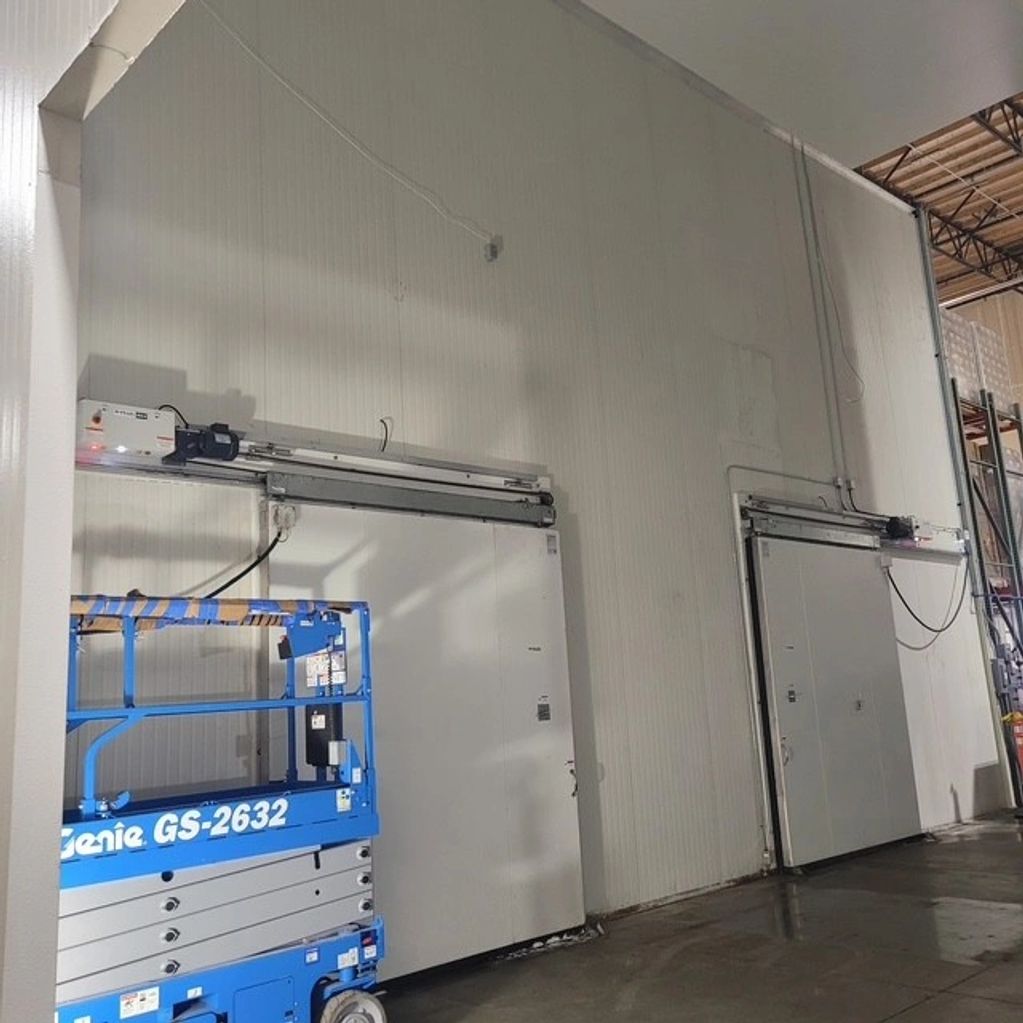 Description: 40' x 84' x 20' freezer/cooler walk-in combo box complete with three man doors and two 96" x 96" horizontal electric sliding doors designed and constructed by Chinook Refrigeration, Inc.